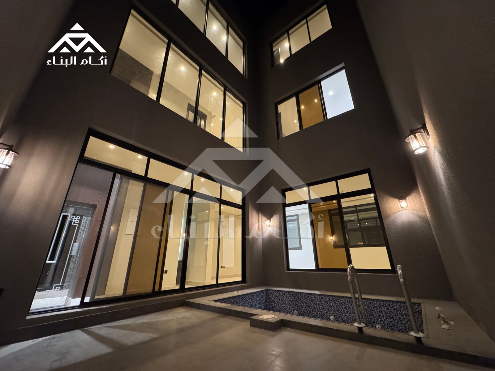 مكونات الدور الارضي ( مجلس رجال _ صالة واسعه _مجلس نساء _2 دورات مياه _ مسبح