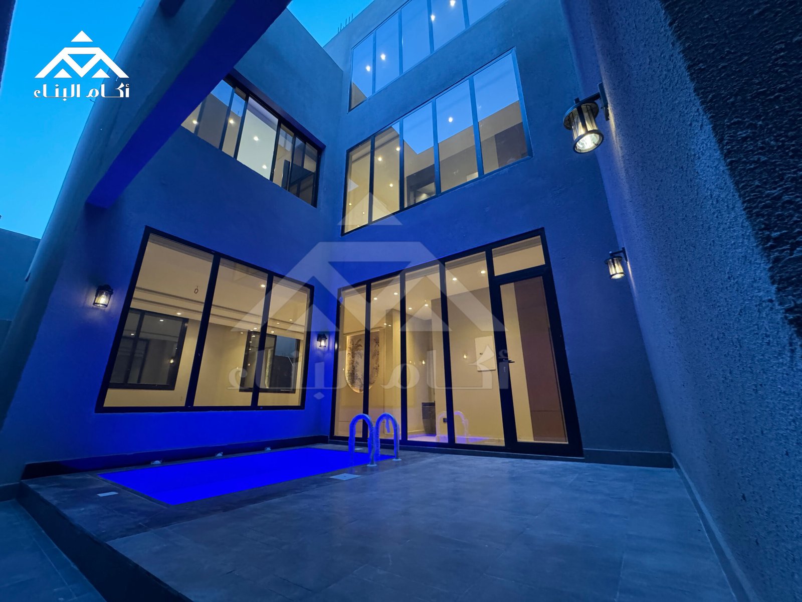 مكونات الدور الارضي ( مجلس رجال _ صالة واسعه _مجلس نساء _2 دورات مياه _ مسبح